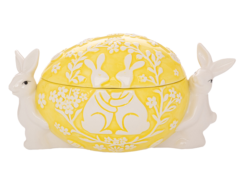 Желтая керамическая банка для печенья с зайками 20x12x11 см