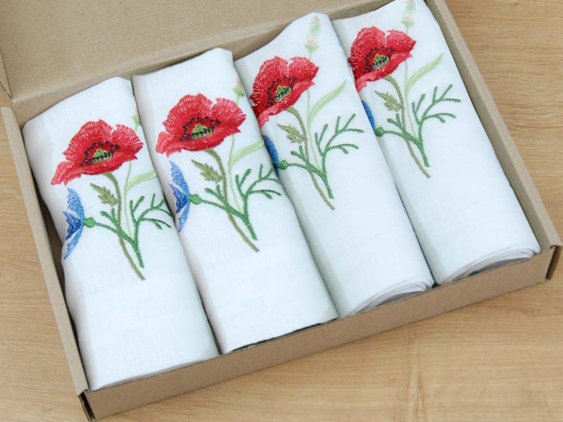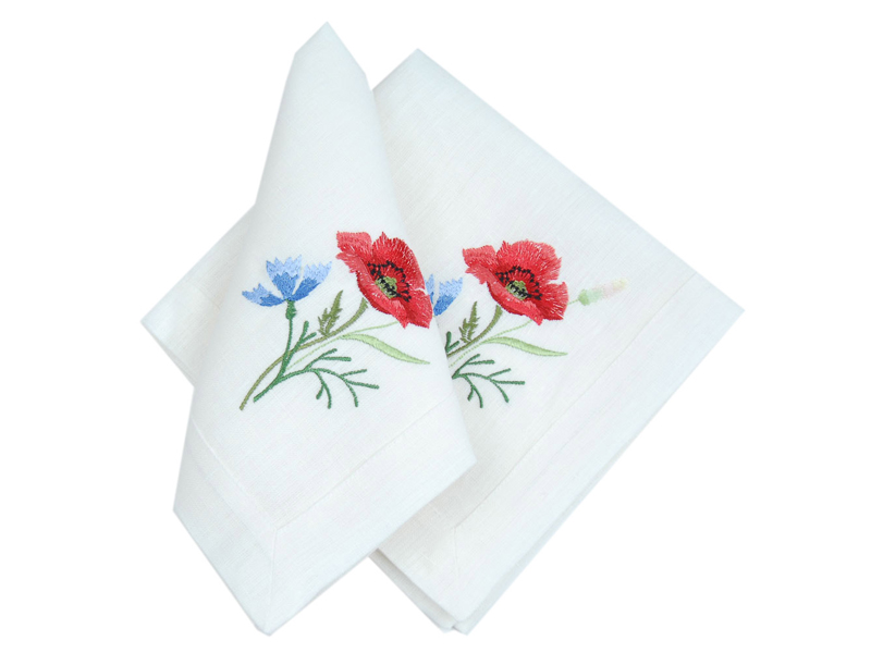Салфетка "Маки з волошками" 4шт. 40х40 (білий льон ТХ-90) мод.1