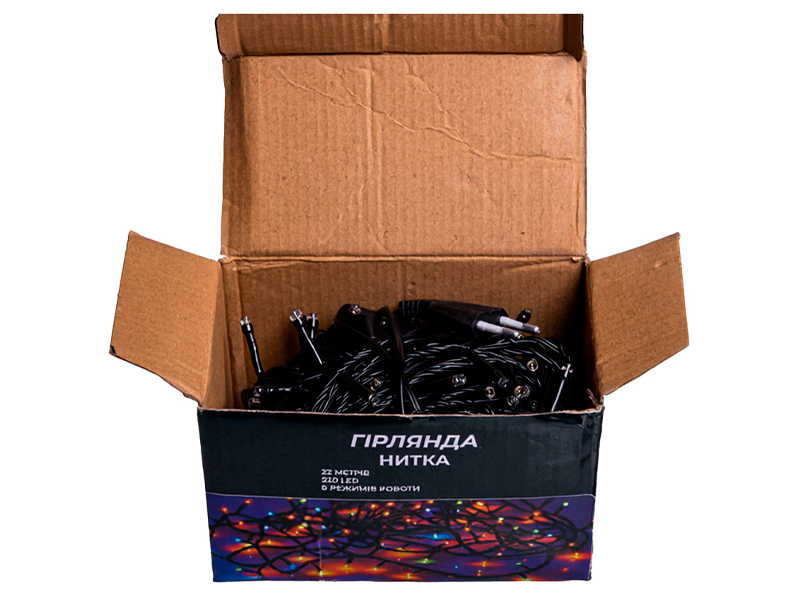Гірлянда нитка 220 LED 22м чорний провід жовтий (від мережі)