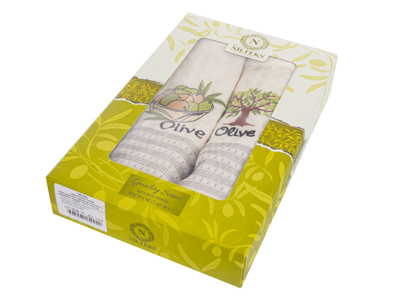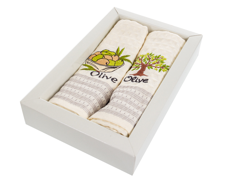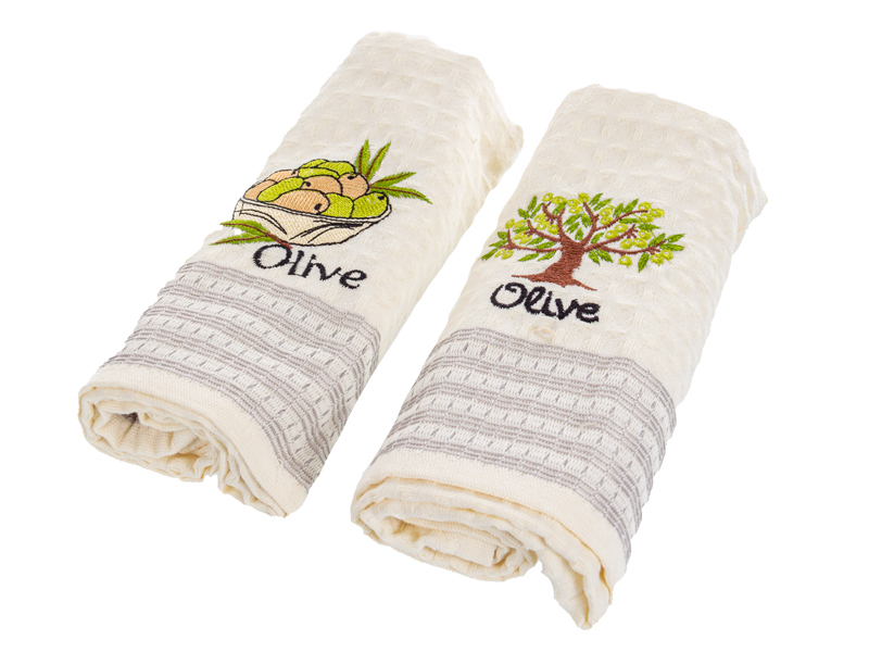 Набор полотенец вафельных кухонных с вышивкой "Оливка" 50х70 см (2 шт)