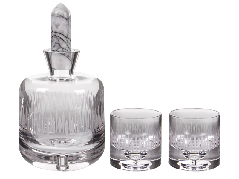 Набор для водки штоф и 2 рюмки (Стекло / мрамор) на подносе