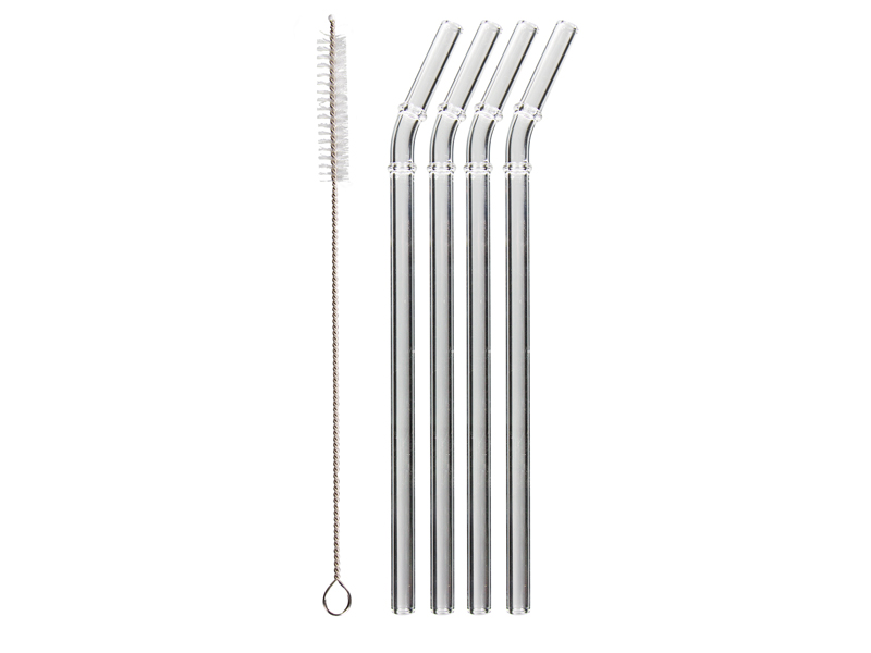 Набор трубочек 4 шт с ёршиком для коктейлей (стекло)