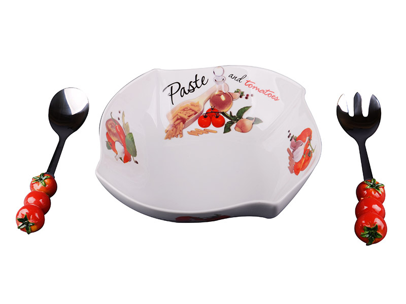 САЛАТНИК "ПАСТА" С ЛОЖКОЙ И ВИЛКОЙ, 25Х25 СМ