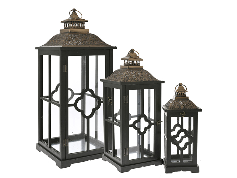 Набор с черных деревянных фонариков 32х32х79/24х24х61/17х17х43 см